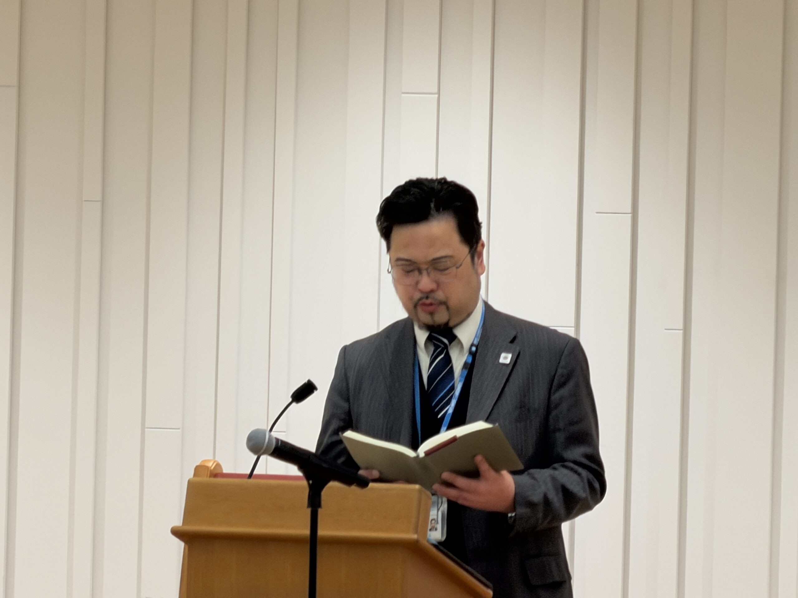 (聖書朗読と祈祷をした宗教部長原田浩司文学部教授)