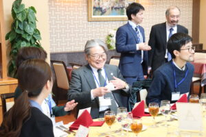 (「建学の精神」のよき理解者である学校法人東北学院原田善教理事長も出席し、励ましの挨拶してくださった)