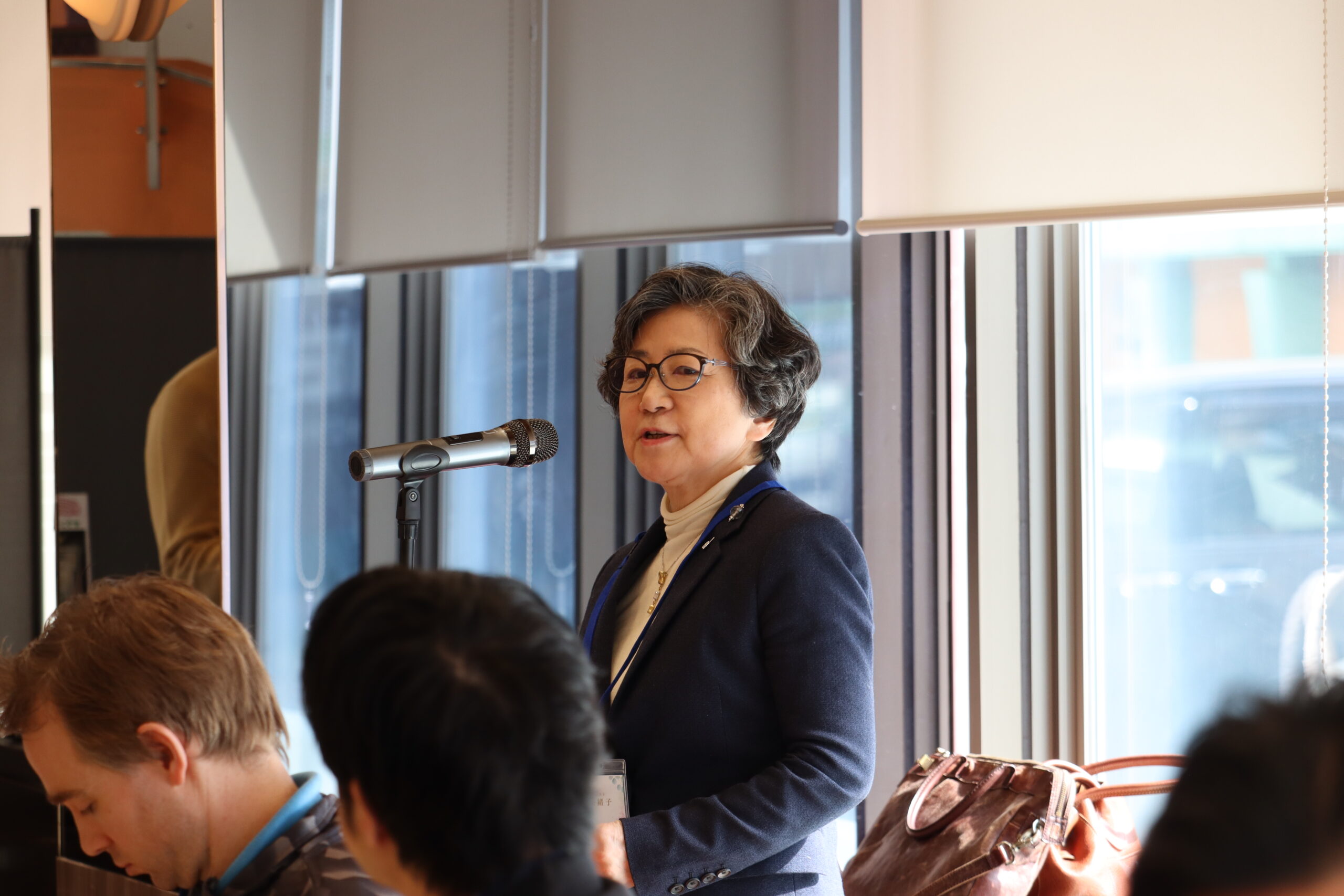 (今井奈緒子教授による来年度大学礼拝の説明。大学オルガニストとして、二か所のパイプオルガンの維持管理には細心の注意を払っている)