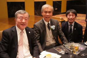 (菊地雄介教授と別れを惜しむ。菊地先生は総務担当副学長を務めてくれ、その後は学長特別補佐として法務担当の仕事をしてくださった。右は高橋信二学生部長)